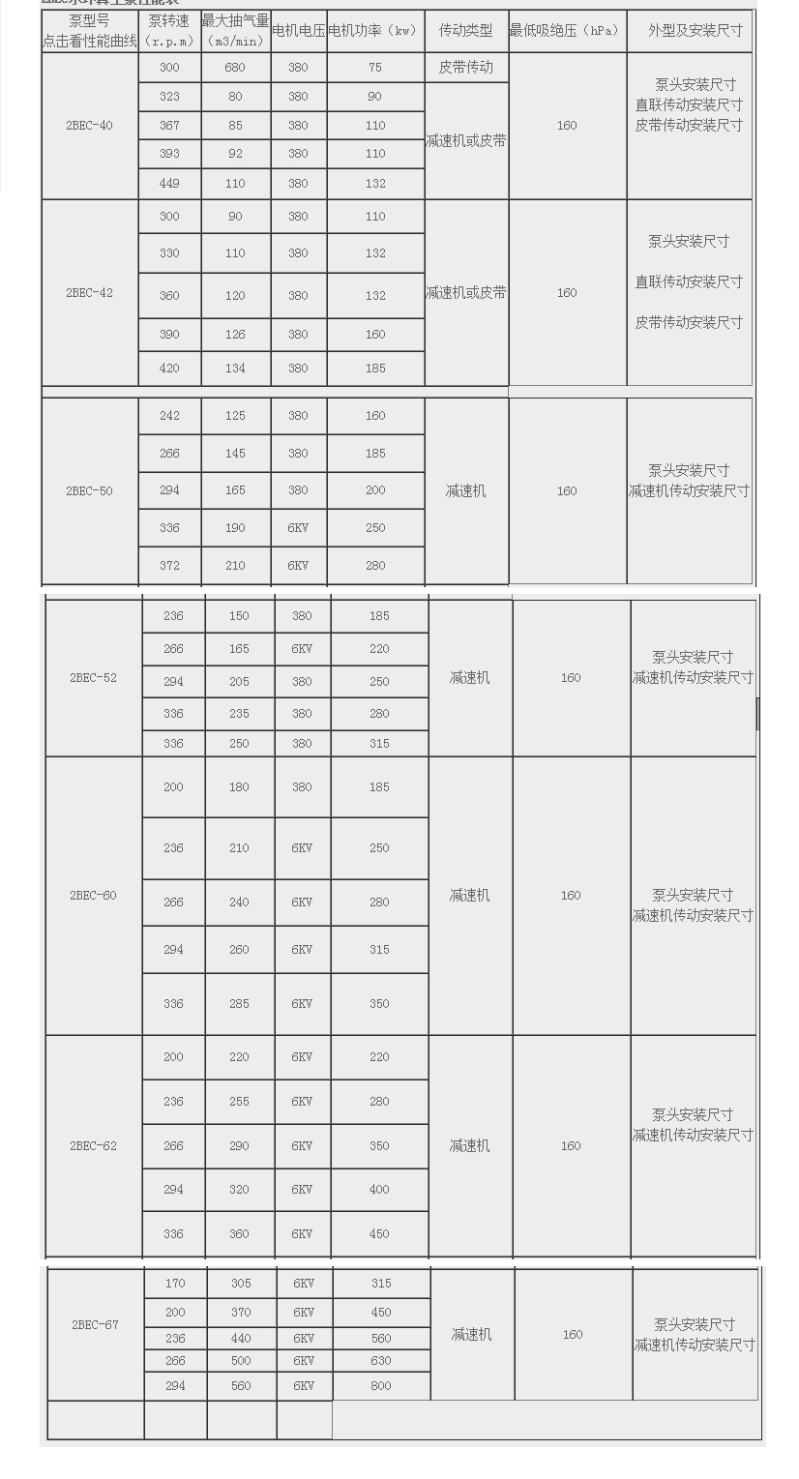2BEC系列水环真空泵采用单级单作用的结构形式,具有结构简单,维修方便,运行可靠,高效节能的优点,对关键部件分配板、叶轮和泵轴等优了设计,无论是对铁球叶轮还是冲压成型的焊接叶轮均经过良好的热处理,并在过盈热装前后,分别进行了平衡及动平衡校验,运转更加平稳、抗冲性更加优良适应了排水量大、载荷冲击波动等恶劣工况。
