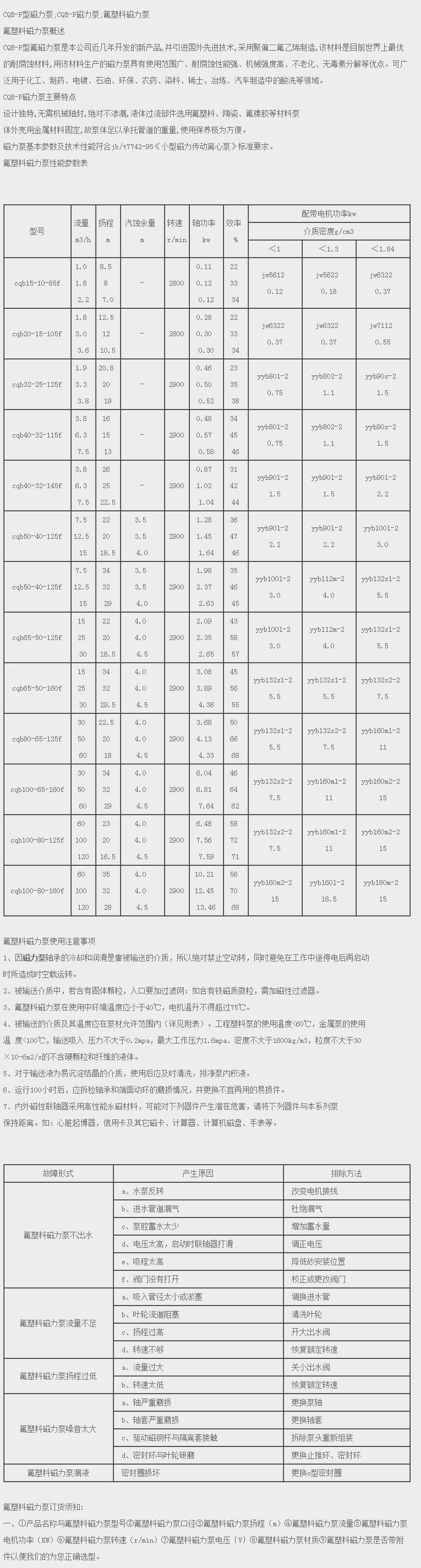 • CQB-F型氟塑料磁力泵