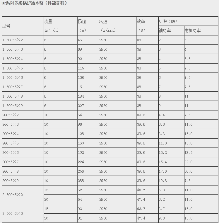 GC型多级泵系卧式、单吸多级、分段式离心泵。具有效率高、性能范围广、运行安全平稳、噪音低、寿命长、安装维修方便等特点。供输送清水或物理化学性质类似于水的其它液体之用。适用于工业和城市给排水、高层建筑增压供水,园林喷灌、消防增压、远距离送水、采暖、浴室等冷暖水循环增压及设备配套等,尤其适用于小型锅炉给水。